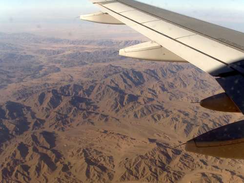 Lot nad obszarem pustynnym i górami robi wrażenie nawet dla kogoś, kto już po raz kolejny odbywa taką podróż.