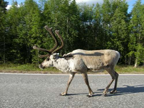 Przyszedł jednak czas powrotu. Opuszczamy Lofoty udając się przez północną Norwegię i Szwecję do Finlandii. Po drodze, a właściwie na drodze były renifery, które majestatycznym krokiem ("człap, człap") ostatecznie raczyły ustąpić miejsca.