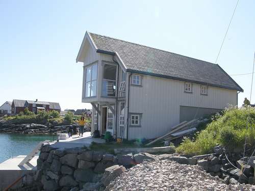 To jest dom w Henningsvar, w którym mieszkaliśmy. Na drugim z zamieszczonych tu zdjęć, widać jak suszymy nasz sprzęt nurkowy.