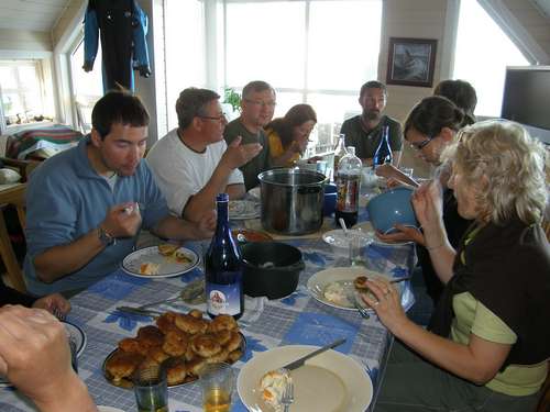 Rybne obiadokolacje były rewelacyjne. "Palce lizać" - tego w Polsce będzie mi brakowało, a to za sprawą naszego niezrównanego kucharza-nurka Kazia Grudy i jego łowczych-wędkarzy tj. Pawła Szcześniaka, Adama Kaldera i Adama Borkowskiego, którzy dzielnie to co złowili wypatroszyli. To najwięksi przyjaciele okolicznych mew, które zawsze jak na zawołanie pojawiały się w odpowiednim momencie. Te fotki przedstawiają naszą gromadkę dzielnie konsumującą rybne przysmaki.