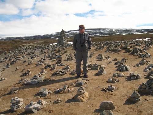 W Norwegii przekroczyliśmy Koło Polarne. Jadąc na północ Norwegii nie sposób tego nie zauważyć, gdyż jest to miejsce odpowiednio wyeksponowane specjalnie dla turystów. Zgromadzone tu kupki kamieni, to pamiątki po turystach dość licznie odwiedzających to miejsce.