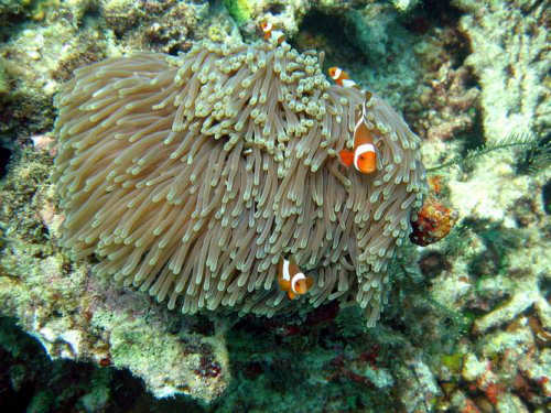 Głównym celem naszej wyprawy do Indonezji było oczywiście nurkowanie w Morzu Jawajskim. Nurkowania wykonywaliśmy z motorowych łodzi a komu było jeszcze mało, to mógł zanurkować z pomostu przy naszej wyspie. Tutaj rafa schodziła na maksymalną głębokość 43m. Rafy w tym morzu są bardzo kolorowe, niezniszczone i dobrze ukształtowane. Widoczność pod wodą nie jest tak dobra jak w np. w Egipcie i trochę brakuje dużych ryb (np. rekinów, mant itp.). Zanurkowaliśmy również na wraku statku (Indonur Wreck), który zatonął w 1961r. Było to dość ciekawe nurkowanie. Podczas naszych nurkowań mieliśmy zawsze dwóch przewodników nurkowych. Jeden, to szwecki instruktor nurkowy a drugi to indonezyjczyk. Obaj bardzo sympatyczni.