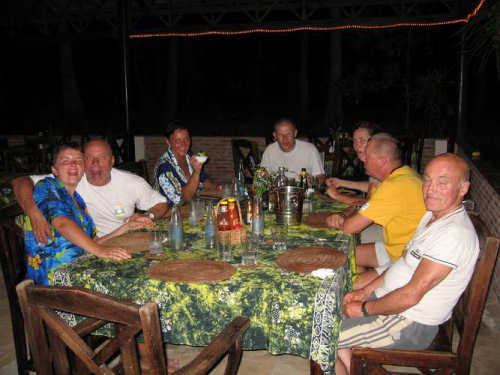Wszystko co dobre musi się kiedyś skończyć. Miłym tego akcentem był ostatni rozrywkowy wieczór jaki zgotowali nam gospodarze. Szczególne podziekowania należą się głównemu Bossowi (jest na zdjęciu - ten w okularach i w niebieskiej koszuli) oraz naszym przewodnikom nurkowym i obsłudze restauracji.