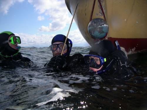 Te fotografie wykonane zostały podczas wyprawy na wrak trałowca "Delfin". Wypływaliśmy z portu w Jastarnii. Nurkowaliśmy w godzinach porannych przy temperaturze powietrza 22°C oraz wody 21°C na jej powierzchni. Morze dość mocno falowało a widzialność była na poziomie 4 metrów. Był też słaby prąd wody. Osiągneliśmy maksymalną głębokość 20 metrów. Przy powrocie do brzegu trafiliśmy na ciekawe zjawiska trąb powietrznych wciągających morską wodę. Jest to uwiecznione na jednej z fotek. Dobrze, że nasza łódka pozostawała w bezpiecznym oddaleniu i nie na kursie kolizyjnym z tym, bardzo rzadko spotykanym pod tą szerokością geograficzną, zjawiskiem.