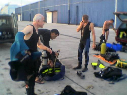 Dodatkowe fotki z nurkowań na wraki wykonane przez Pawła S. (wszyskie na l±dzie). Jak widać płetwonurkowie musz± się nieĽle "napracować" zanim zejd± pod wodę.