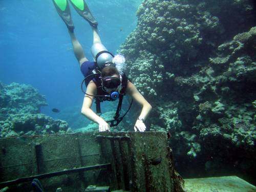 Te zdjęcia pokazują ostatnie nurkowanie podczas tej wyprawy do Egiptu. Miało ono miejsce przy wyspie ABU RAMADA położonej na współrzędnych geograficznych: N27°09'29" E33°58"44". Tu znajdują się resztki wraku statku. Dobrze widać pozostałości po silniakach itp. Przy wyspie rozwinęło się bogate życie podwodne co obrazują te fotki. Pare zdjęć pokazuje również przygotowania do zejścia pod wodę.