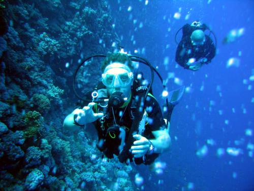 Te fotki przedstawiają nurkowanie na pierwszym z celi naszej podróży, czyli u podnóża wyspy Wielki Brat (Big Brother). Wyspa ta leży na następujących współrzędnych geograficznych: N26°18'42" E34°50'44". Tutaj nurkowaliśmy m.in. na wraku statku AIDA II (zatonął w 1957r). Ze wzgledu na dość dużą głębokość, na której on leży niestety, przy posiadanym oświetleniu, nie było możliwe wykonanie odpowiednich zdjęć. Sam wrak jest mocno porośnięty. Tutaj spotkaliśmy dość dużego Napoleona, którego ładnie pokazuje zrobiona fotka. Widoczna jest również bardzo ładna stromo opadająca ściana podwodnej części wyspy.