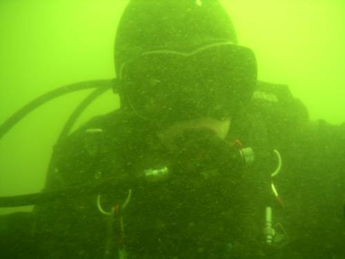 Nurkowanie w jeziorze Żędowskim położonym niedaleko Szubina. Jeziorko dość ciekawe, bo łatwo osiągnąć maksymalną jego głębokość (prawie 30m) płynąc z jednego jego brzegu w kierunku brzegu przeciwległego. Jeziorko dość czyste. Widoczność do 4m głębokości dobra, potem aż do ok. 10m głębokości bardzo słaba, by w końcu aż do dna powrócić do sanu dobrego. Jeden z kolegów - Tomek, nurkował z komputerem SUUNTO, dzięki temu wśród fotek jest również plik graficzny z prezentacją profilu naszego nurkowania.