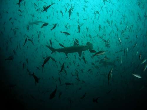 Nurkowania na Galapagos były dla mnie głównym celem tej wyprawy. Dużym dla mnie zaskoczeniem była inność nurkowań odbytych w tym akwenie. Mimo położenia na samym równiku, temperatura wody to tylko maksymalnie 23st.C a bywało, że tylko 17st.C. Silne prądy zmuszały nas do czepiania się skał i niczym na galerii w teatrze oglądaliśmy podwodne przedstawienie. Obok nas, ponad i pod nami, przepływały ogromne stada rekinów galapagoskich (blisko spokrewnionych ze słynnym żarłaczem białym) i rekinów młotów. Spotkaliśmy pod wodą duże ilości morskich żółwi i orleni. Były stada barakud. Widzieliśmy również z bliska manty, raje, lwy morskie i delfiny. Największym jednak dla mnie przeżyciem było pływanie z rekinami wielorybimi. Ich potęga była przytłaczająca i zrobiła na mnie ogromne wrażenie. Oglądaliśmy także ryby kroczące po dnie (jak szminką wymalowane), mureny, kolorowe rozgwiazdy, homary (langusty) i wiele różnych ryb, których nazw nie sposób zapamiętać. W rankingu dotychczasowych moich nurkowań Galapagos zajęło niezaprzeczalnie 1 miejsce.