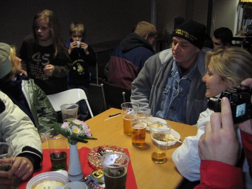 Po południu autokary przewiozły nas nad Zalew Koronowski do miejscowości Pieczyska. Tu w wojskowym ośrodku wypoczynkowym czekał na nas smaczny obiadek a następnie po południu odbyło się bardzo ciekawe spotkanie ze znanym człowiekiem morza Antonim Dębskim (autorem bardzo ciekawej książki mającej charakter biograficzny) i wyświetlane były interesujące filmy poświęcone tematyce nurkowej. Wieczorem, mimo niesprzyjającej aury (trochę padał deszcz) odbyła się biesiada kolacyjna przy ognisku. Cała brać płetwonurkowa integrowała się przy piwie i nie tylko. Wśród gości byli zaprzyjaźnieni z naszym klubem PERKOZ-PRO koledzy z Poznania z Bolkiem na czele, a także ekipa strażaków-płetwonurków z Łowicza. Atmosfera była wspaniała, ale przyszedł czas żeby położyć się spać i wziąść udział w kolejnym dniu Spływu.