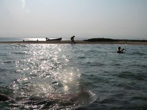 Jak przystało na prawdziwych nurasów pływaliśmy również w samym sprzęcie ABC (maska, płetwy, fajka) a robiliśmy to "na środku" morza przy małej, bezludnej i piaszczystej wysepce.