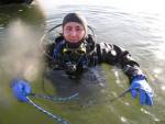 Piękna mroźna niedziala była inspiracją do zrobienia tradycyjnego nurka podlodowego. Lód był dość gruby, lecz kruchy, w związku z tym przerębel wycieliśmy w pobliżu pomostu. Sprawna organizacja nurkowania przez Artura B. sprawiła, że szybko przystąpiliśmy do właściwego zadania jakim było oczywiście samo zejście pod lód. Potem rozgrzewająca kawka i powrót do domu.