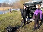 Powrót, po czasie, do "starych" miejsc zawsze jest przyjemny. W niezbyt mroźny niedzielny poranek (ok. -2°C) postanowiliśmy nasze "dupska" zamoczyć w Zalewie. Wybraliśmy się w parę osób w znane z wcześniejszych nurkowań miejsce zwane Wilczym Gardłem. Był dość gruby lód. Sporo wędkarzy, w znacznej odległości od nas, próbowało szczęścia w połowach podlodowych, a my asekurowani z brzegu na dość długiej linie zanurzaliśmy się pod lód. Widoczność jak na Zalew była bardzo dobra. Każdy z nas "zaliczył" pod wodą: platformę, zegar, kibel. pralkę i stanowisko komputerowe. Kto uczestniczył w tym nurku? Wystarczy spojrzeć na załączone fotki.